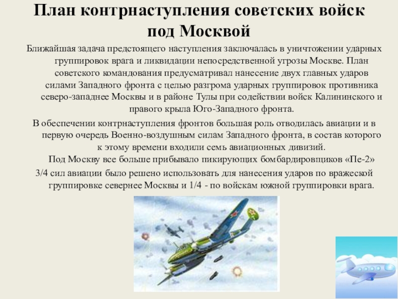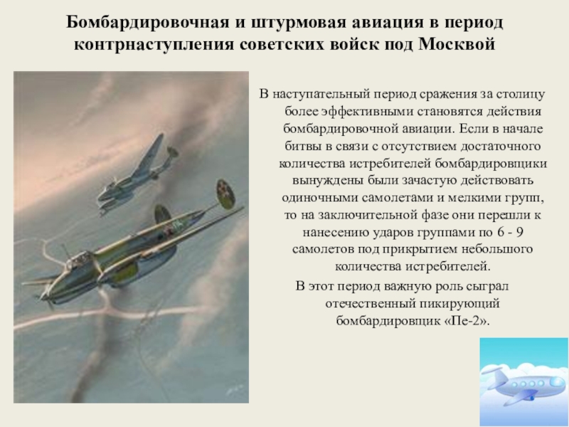Слайд 12Бомбардировочная и штурмовая авиация в период контрнаступления советских войск под Москвой
