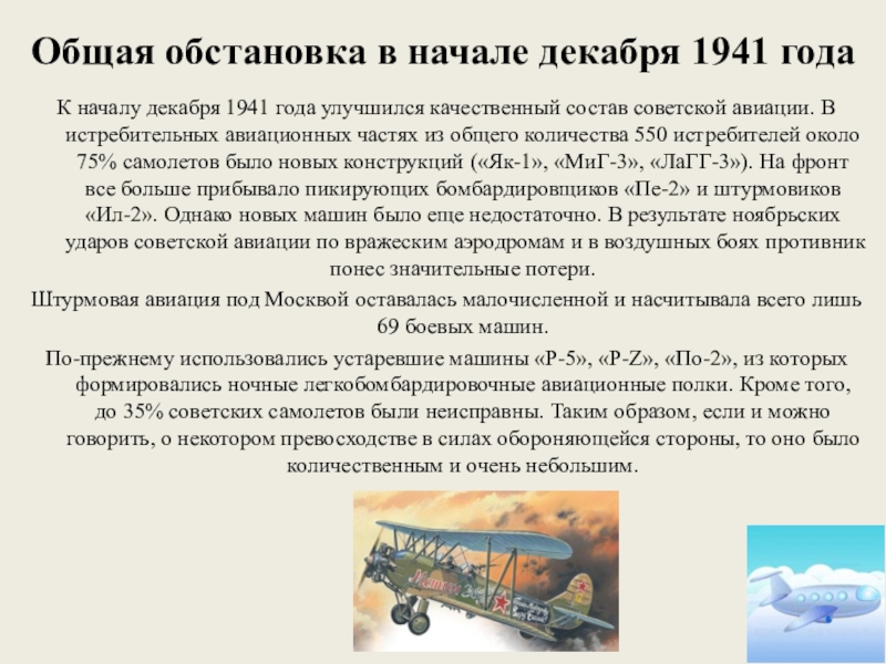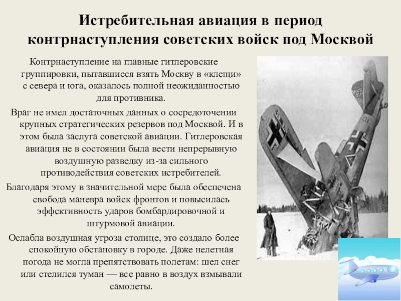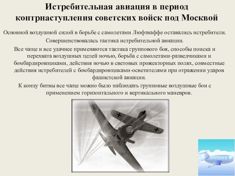 Слайд 10Истребительная авиация в период контрнаступления советских войск под Москвой