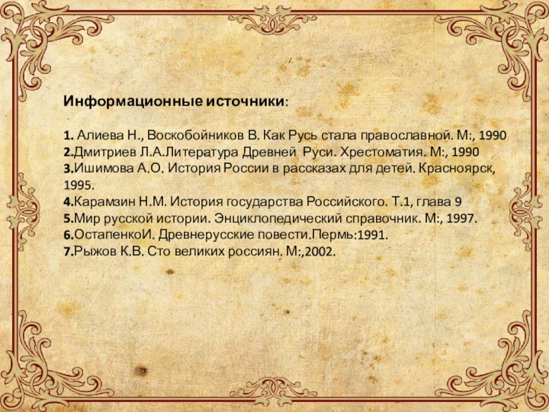 1. Алиева Н., Воскобойников В. Как Русь стала православной. М:,