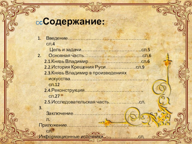 2.3.Князь Владимир в произведениях искусства………………………………………….сл.12
