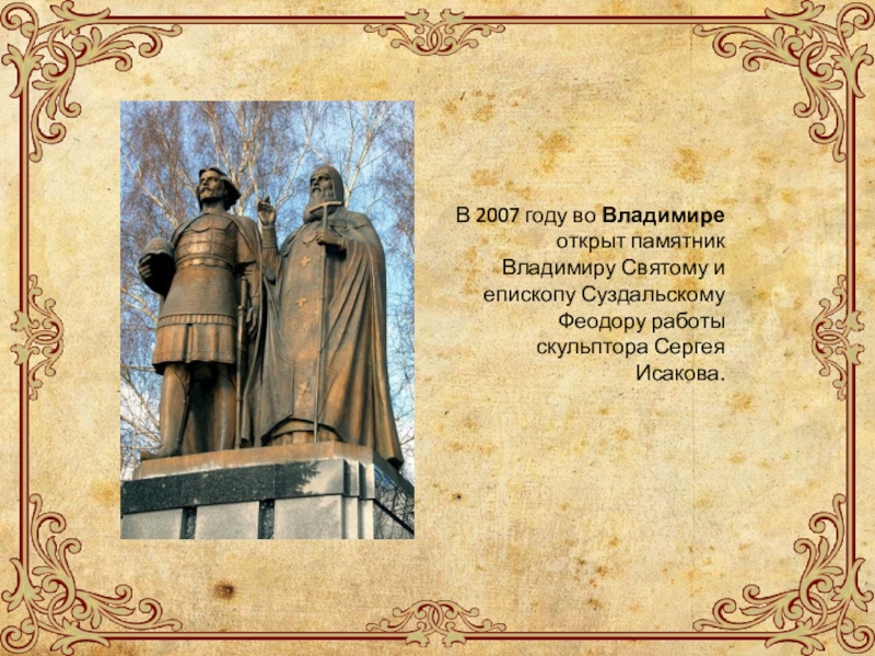 Слайд 26В 2007 году во Владимире открыт памятник Владимиру Святому и епископу