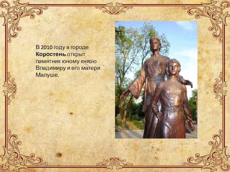 Слайд 27В 2010 году в городе Коростень открыт памятник юному князю Владимиру