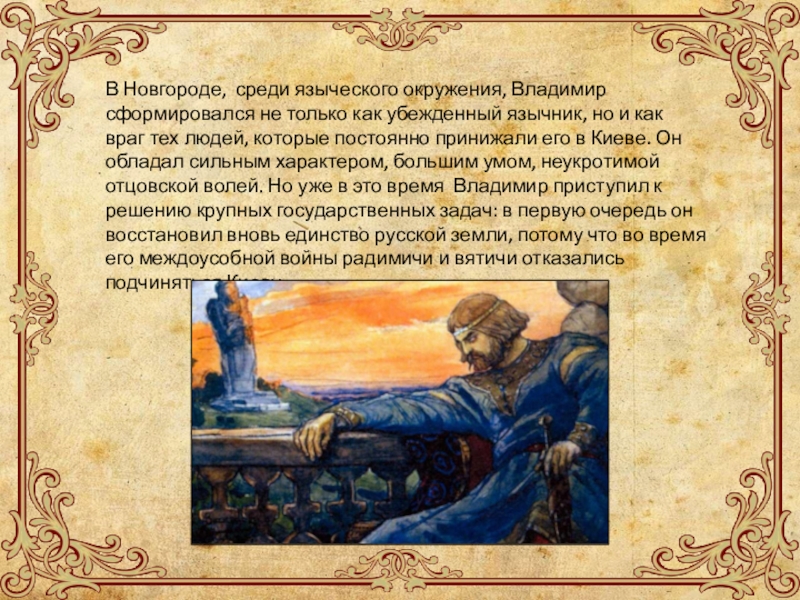 Слайд 9В Новгороде, среди языческого окружения, Владимир сформировался не только как убежденный