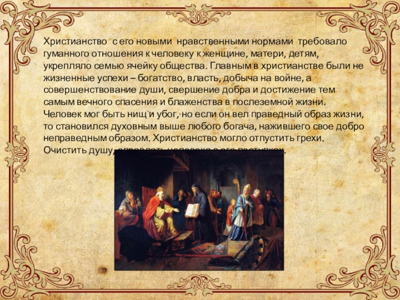 Слайд 12Христианство с его новыми нравственными нормами требовало гуманного отношения к человеку