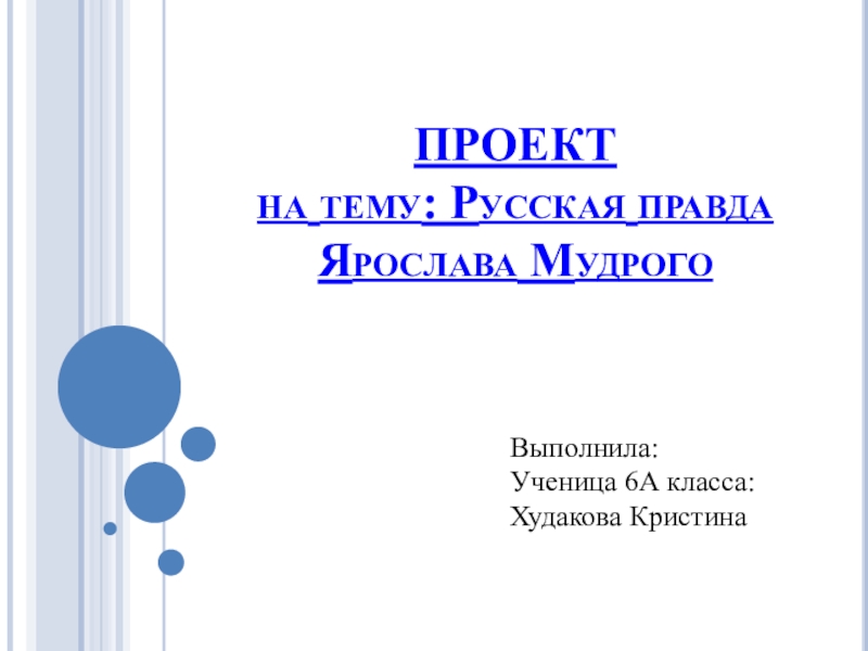 ПРОЕКТ на тему: Русская правда Ярослава МудрогоВыполнила:Ученица 6А класса:Худакова Кристина