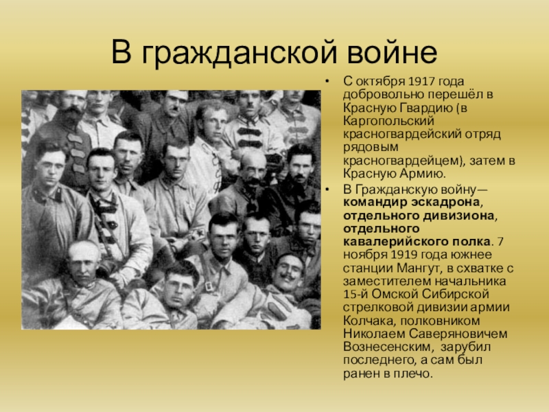 (в Каргопольский красногвардейский отряд рядовым красногвардейцем), затем в Красную Армию.