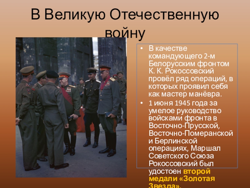 Слайд 21В качестве командующего 2-м Белорусским фронтом К. К. Рокоссовский провёл ряд операций, в