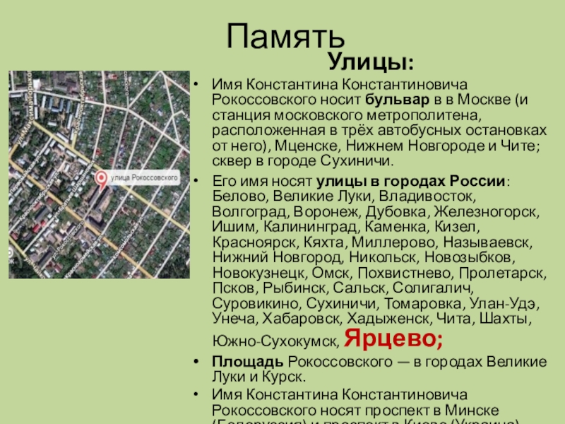 Имя Константина Константиновича Рокоссовского носит бульвар в в Москве (и станция