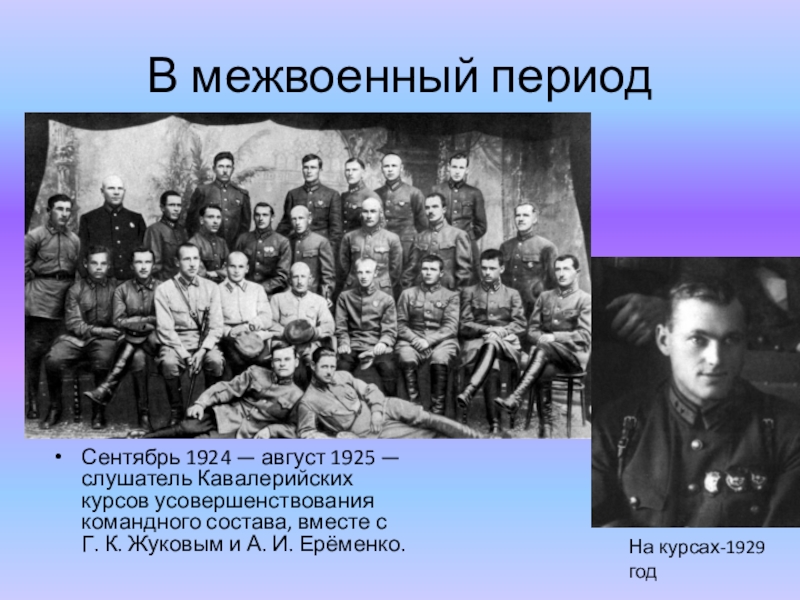 Сентябрь 1924 — август 1925 — слушатель Кавалерийских курсов усовершенствования командного