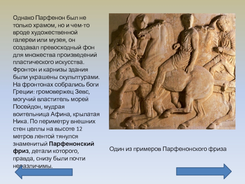 Слайд 11Однако Парфенон был не только храмом, но и чем-то вроде художественной