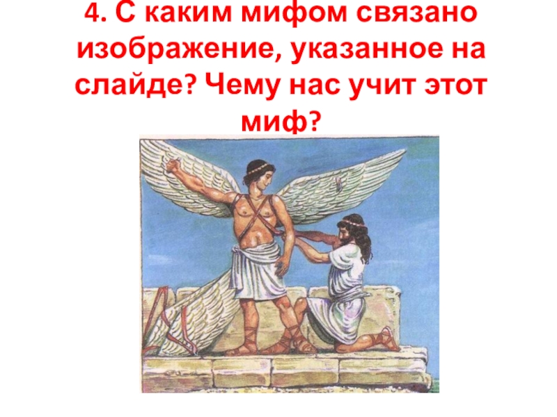 4. С каким мифом связано изображение, указанное на слайде? Чему нас учит этот миф?
