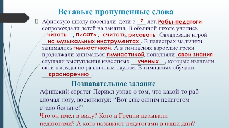 Что он имел в виду? Кого в Греции называли педагогами? А кого называют педагогами в наши дни?