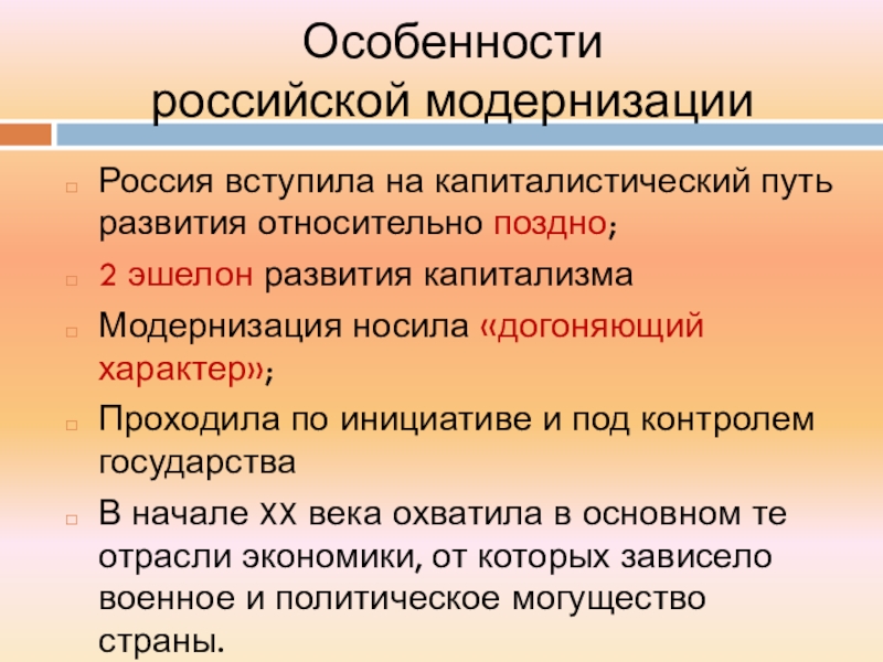 В начале XX века охватила в основном те отрасли экономики, от которых зависело военное и политическое могущество страны.