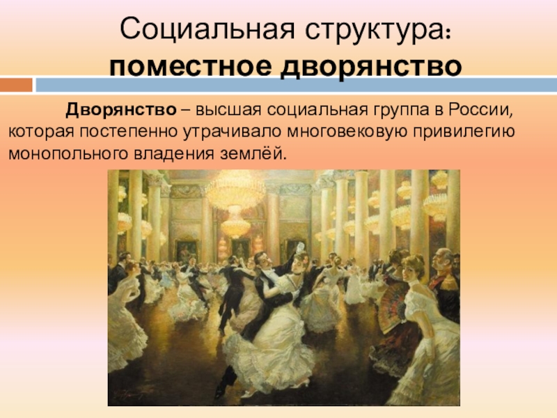 высшая социальная группа в России, которая постепенно утрачивало многовековую привилегию монопольного владения землёй.