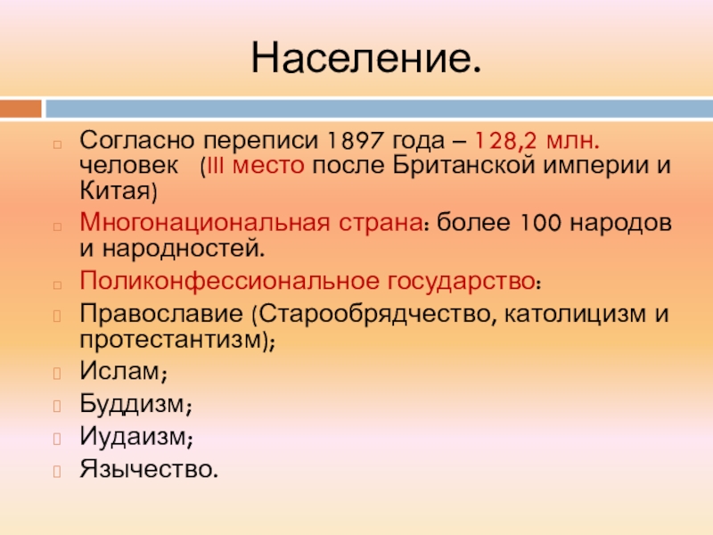 Согласно переписи 1897 года – 128,2 млн. человек (III место