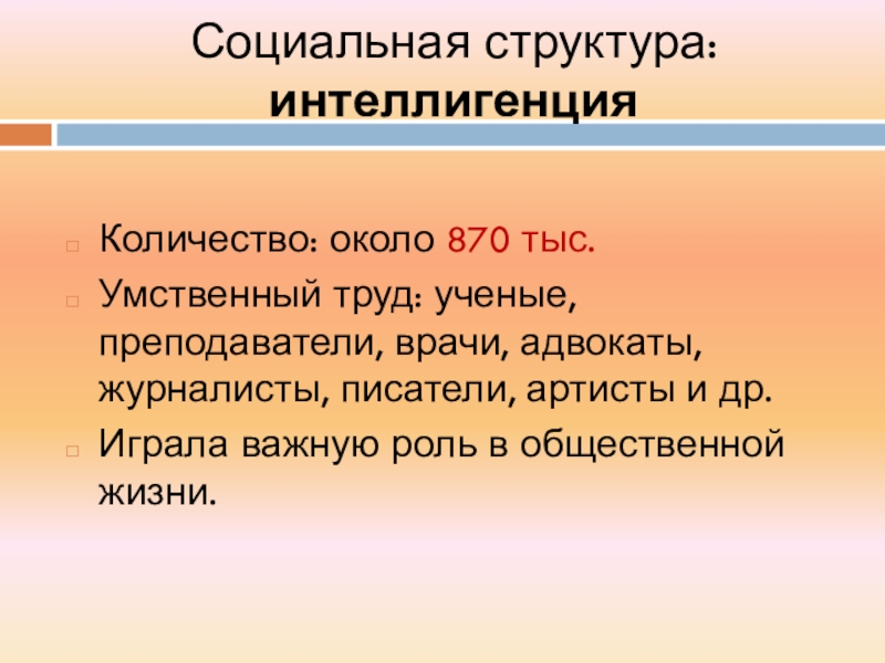 Сохранение старых сословий и появление новых: буржуазия, пролетариат, интеллигенция.