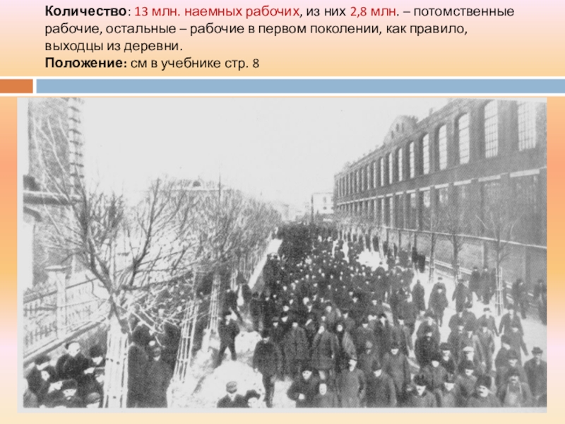 Слайд 20Количество: 13 млн. наемных рабочих, из них 2,8 млн. – потомственные