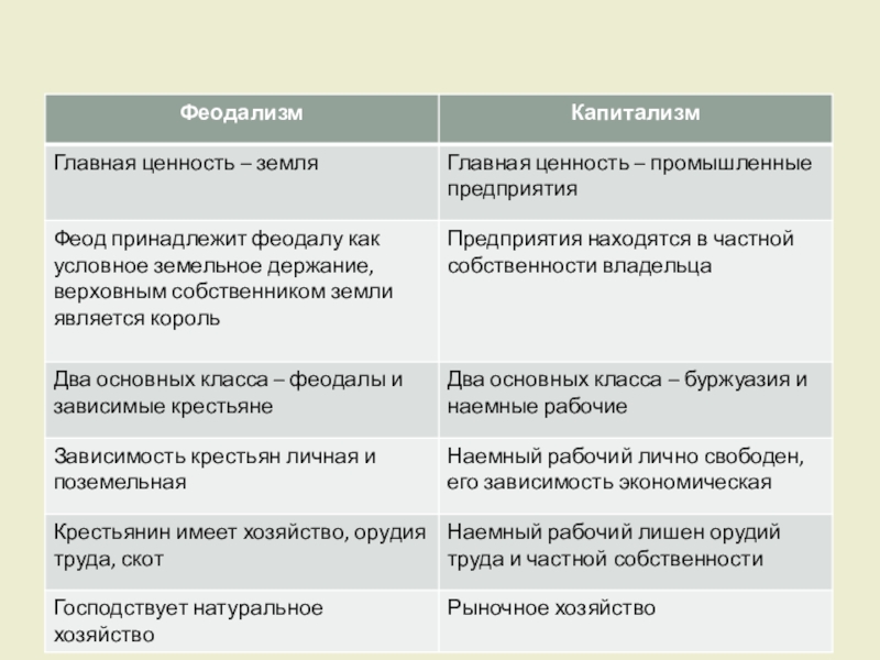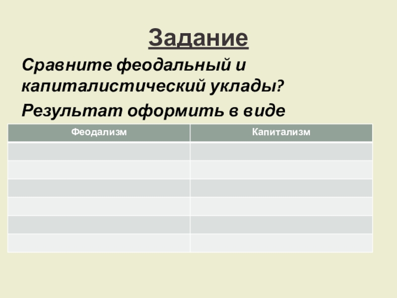 ЗаданиеСравните феодальный и капиталистический уклады? Результат оформить в виде таблицы.