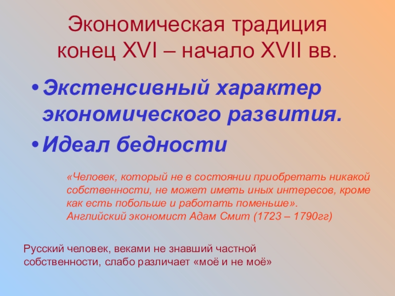 «Человек, который не в состоянии приобретать никакой собственности, не может иметь иных интересов, кроме как есть побольше и работать поменьше».