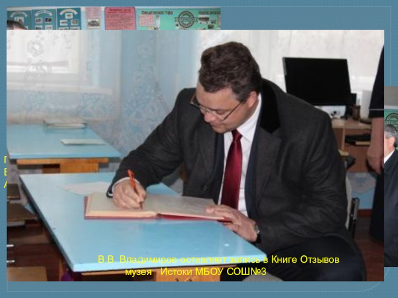 В.В. Владимиров оставляет запись в Книге Отзывов музея Истоки МБОУ СОШ№3