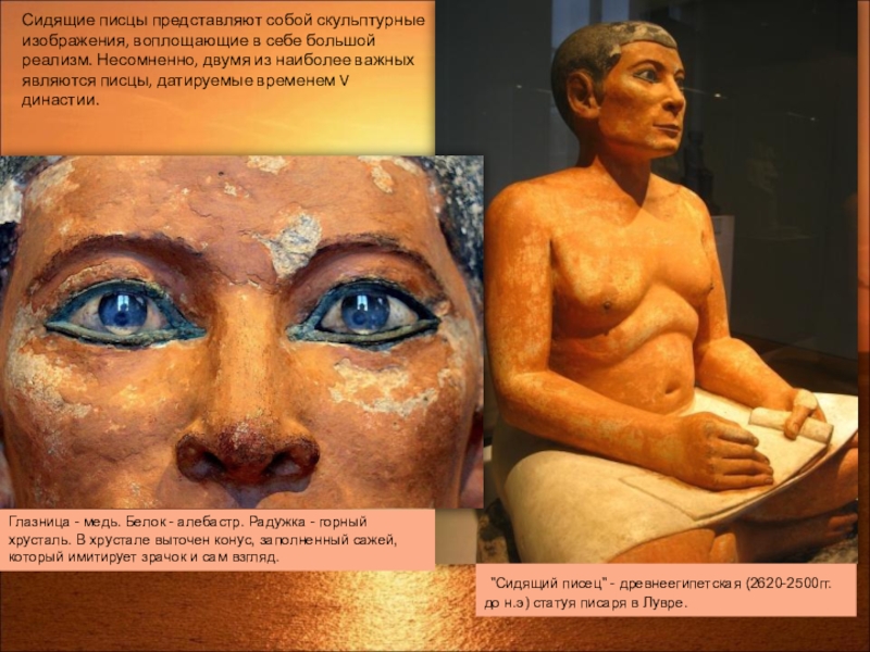 "Сидящий писец" - древнеегипетская (2620-2500гг. до н.э) статуя писаря в Лувре.