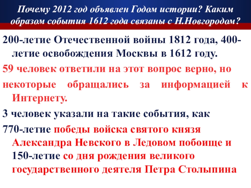 200-летие Отечественной войны 1812 года, 400-летие освобождения Москвы в 1612 году.