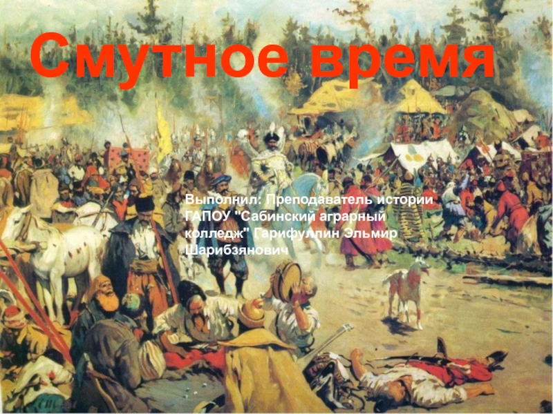 Выполнил: Преподаватель истории ГАПОУ "Сабинский аграрный колледж" Гарифуллин Эльмир Шарибзянович