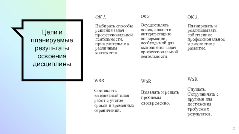Выбирать способы решения задач профессиональной деятельности, применительно к различным контекстам.