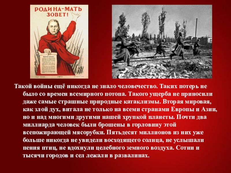 Слайд 2Такой войны ещё никогда не знало человечество. Таких потерь не было