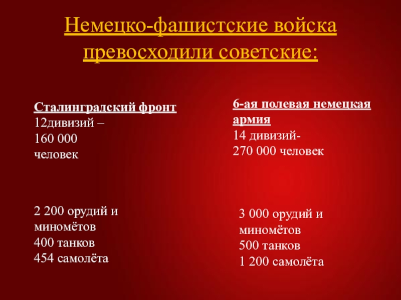 Слайд 8Немецко-фашистские войска превосходили советские: