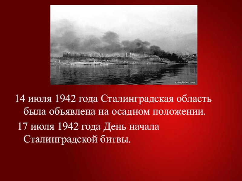 Слайд 314 июля 1942 года Сталинградская область была объявлена на осадном положении.