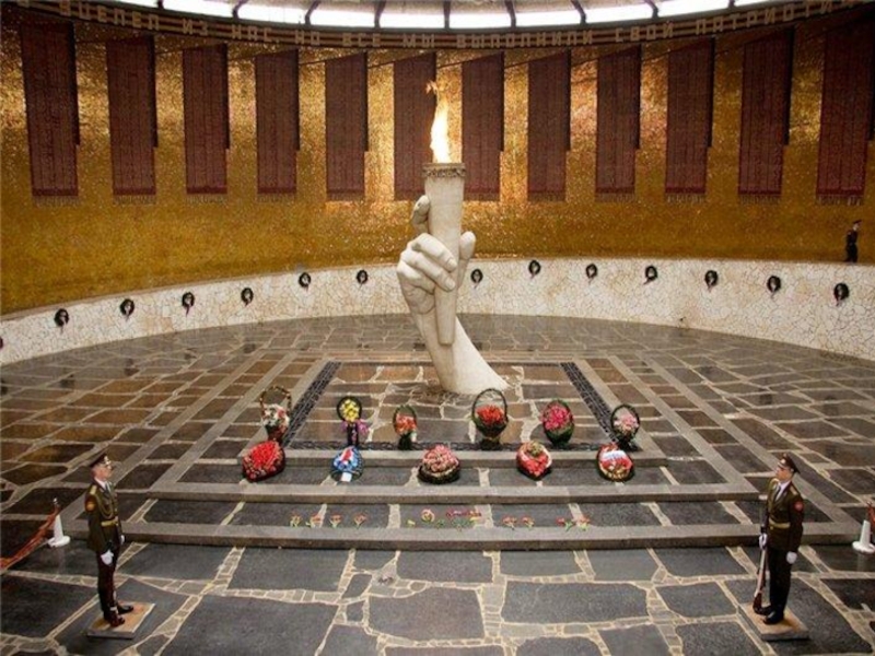 Слайд 18Их имена высечены на плите - знамене в Зале Воинской Славы