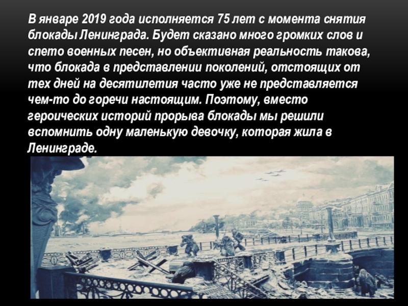 Слайд 3В январе 2019 года исполняется 75 лет с момента снятия блокады
