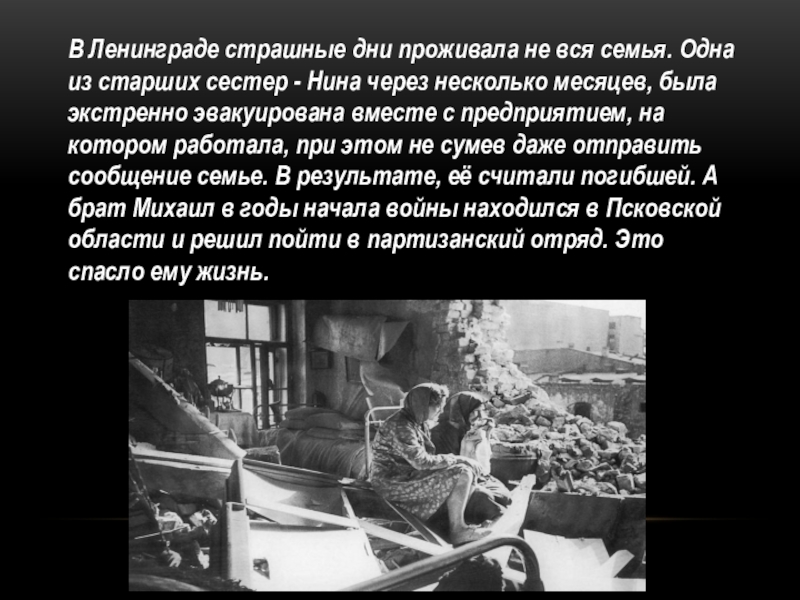 Слайд 5В Ленинграде страшные дни проживала не вся семья. Одна из старших
