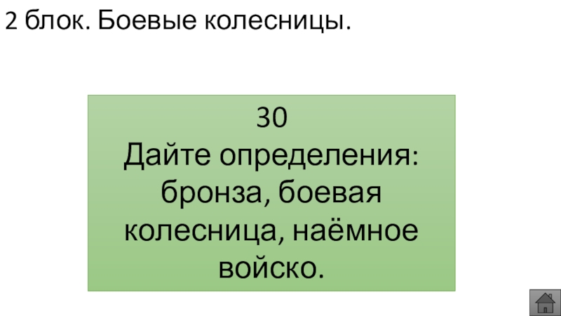 2 блок. Боевые колесницы. 30Дайте определения: бронза, боевая колесница, наёмное войско.