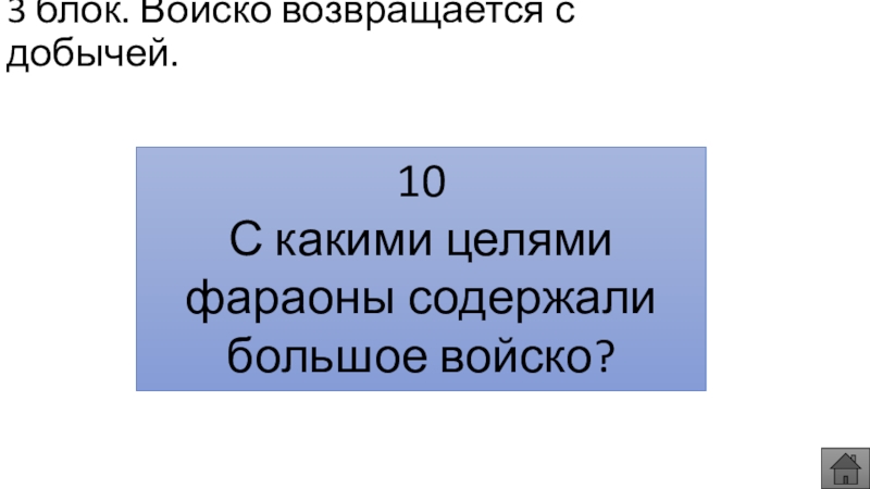 3 блок. Войско возвращается с добычей. 10С какими целями фараоны содержали большое войско?
