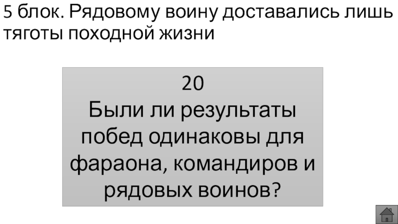 5 блок. Рядовому воину доставались лишь тяготы походной жизни 20Были ли результаты побед одинаковы для фараона, командиров