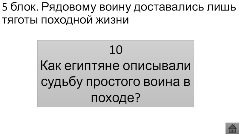 5 блок. Рядовому воину доставались лишь тяготы походной жизни 10Как египтяне описывали судьбу простого воина в походе?
