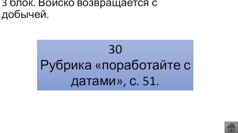 3 блок. Войско возвращается с добычей. 30Рубрика «поработайте с датами», с. 51.