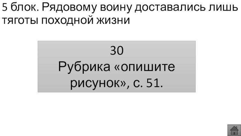 5 блок. Рядовому воину доставались лишь тяготы походной жизни 30Рубрика «опишите рисунок», с. 51.