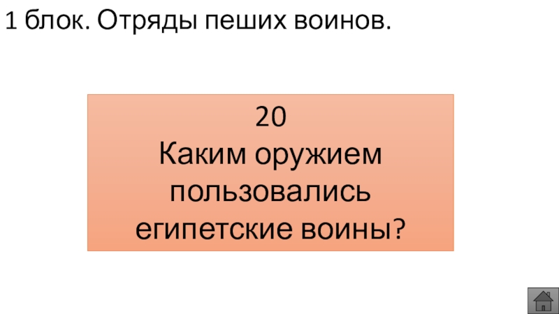 1 блок. Отряды пеших воинов.20Каким оружием пользовались египетские воины?
