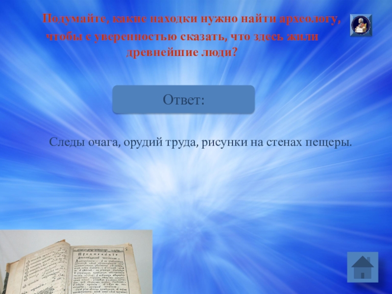 Следы очага, орудий труда, рисунки на стенах пещеры.