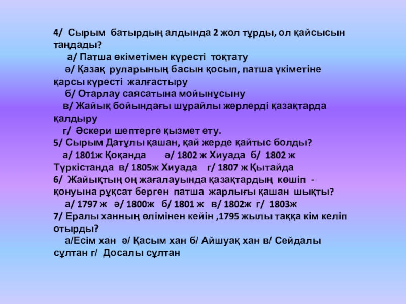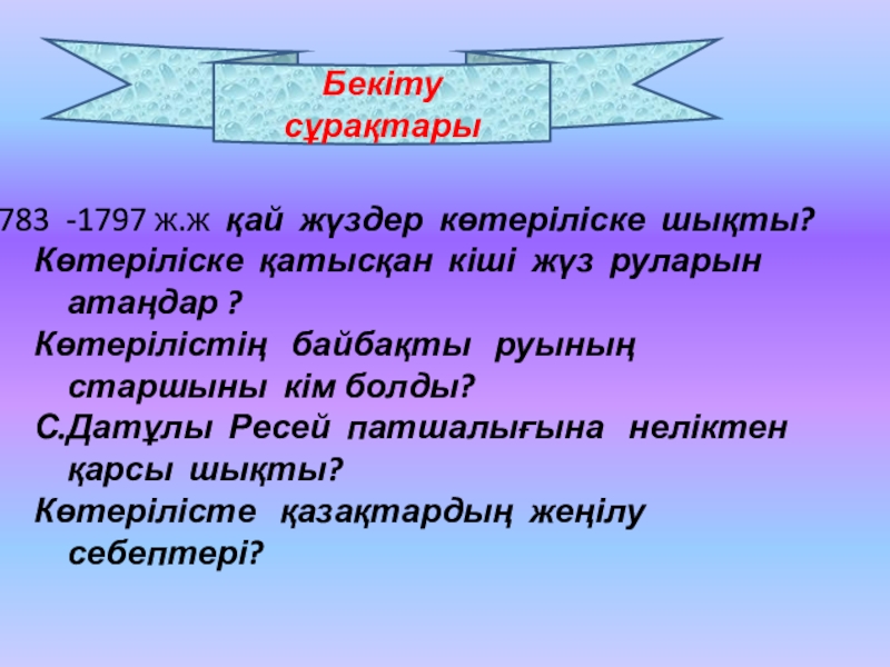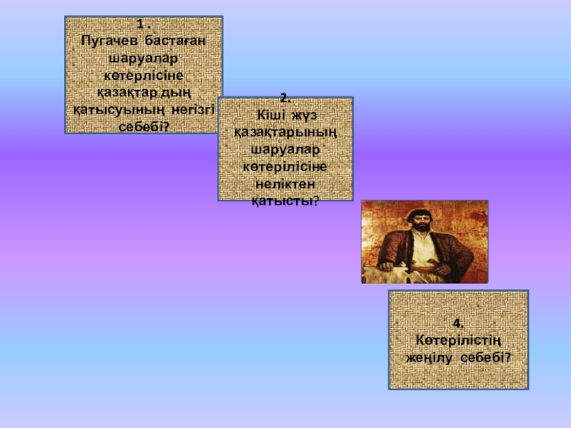 1773 -1775 жж кіші жүз бен орта жүз қатысты үш кезеңге бөлінді. Ералы , Досалы ,Айшуақтар соғысты қолдады . Орыс- қазақ байланысында маңызды оқиға болды .