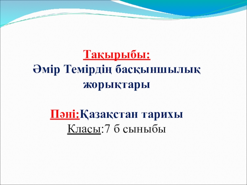 Тақырыбы: Әмір Темірдің басқыншылық жорықтарыПәні:Қазақстан тарихыКласы:7 б сыныбы