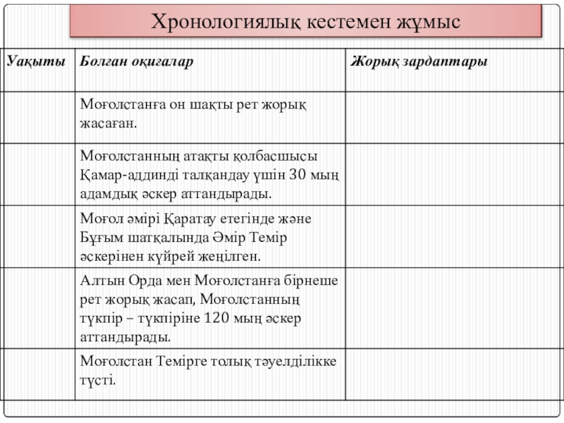 Презентация, доклад на тему Тарих пәнінен презентация тақырыбы Әмір Темірдің басқыншылық жорықтары (7 класс)