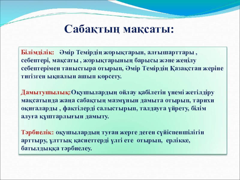 Слайд 2Сабақтың мақсаты: