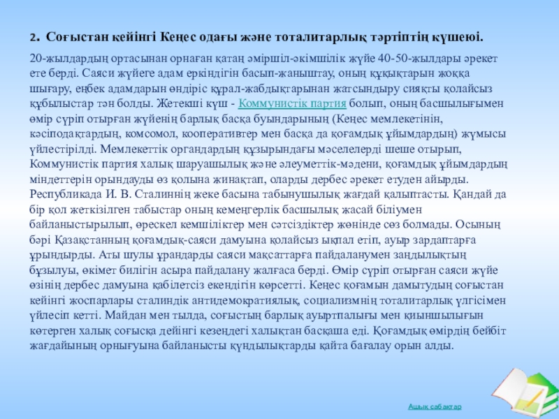 Слайд 192. Соғыстан кейінгі Кеңес одағы және тоталитарлық тәртіптің күшеюі.