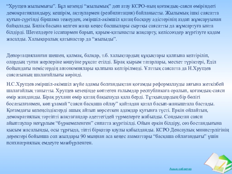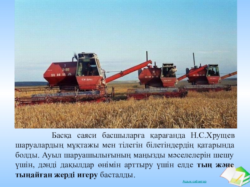Слайд 25 Басқа саяси басшыларға қарағанда Н.С.Хрущев шаруалардың мұқтажы