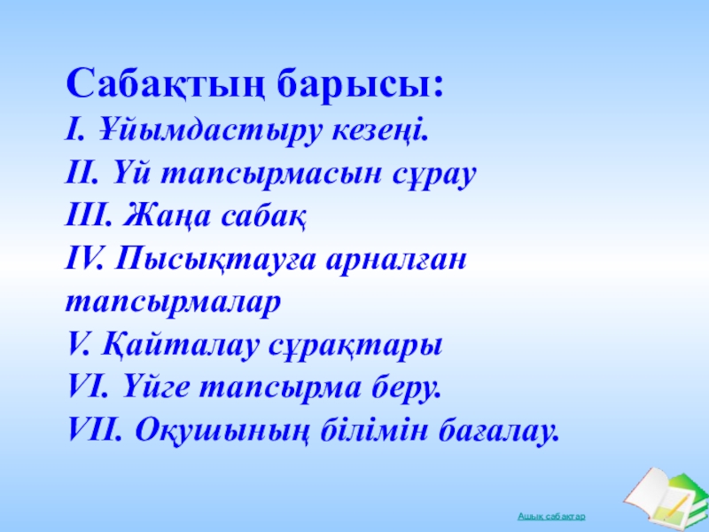 Слайд 8Сабақтың жоспары: