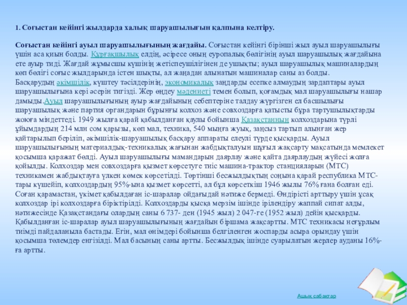 Слайд 161. Соғыстан кейінгі жылдарда халық шаруашылығын қалпына келтіру.